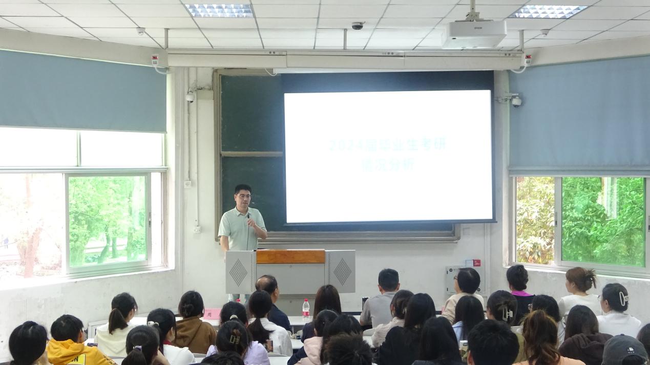 5月10日上午8:30,太阳成集团tyc234cc在4A-203召开2024年度青春就业大讲堂之数学专业“只考一次研”考研动员大会暨考研经验交流会。太阳成集团tyc234cc党委书记裴峥、党委副书记兼纪委书记周川、数学系主任徐艳艳、数学教师代表窦红侠老师、廖泓茨老师以及2020级考研上岸学生代表王悦茹、罗怡出席,2021级数学专业本科生参加,会议由2021级辅导员主持。