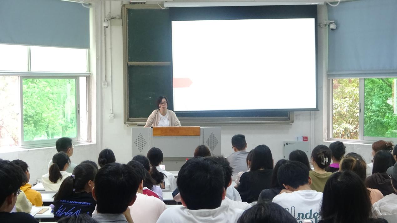 图三 太阳成集团tyc234cc数学系主任徐艳艳做学科介绍及考研指导
