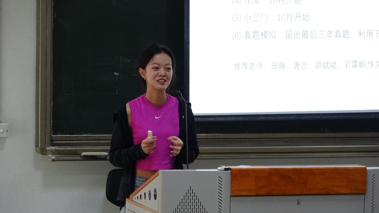 最后,两位优秀考研学子代表依次进行经验交流,她们分别分享了自身备考经验和心得,从学习方法、心态调整、时间安排等方面,都提供了全面且切实的建议。