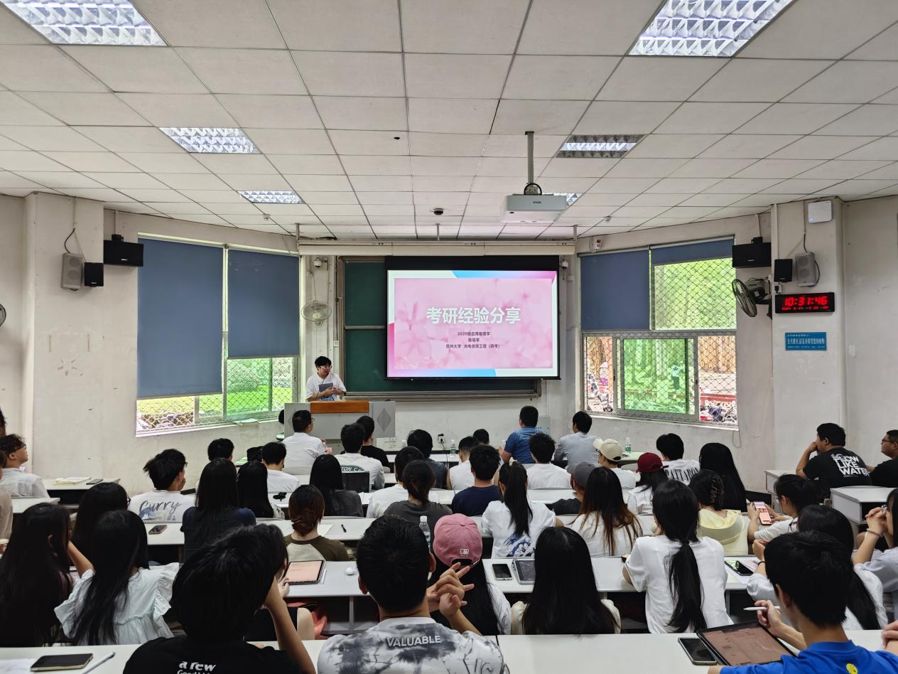 会上,周川讲解2024届毕业生考研情况,并介绍了考研的意义和好处,他指出,考研不仅能够提升同学们的专业素养和综合能力,还能够增加更多就业的选择和机会,希望同学们能够做足准备,积极备考,一战成硕。接着,李会东分析了毕业生考研情况,提醒同学们吸取经验、提前准备,并且详细介绍了太阳成集团tyc234cc物理专业硕士研究生的招生政策和优势领域,希望同学们根据自身情况选择适合自己的院校,全方面做好准备。随后,胡夏融对物理专业历届考研情况和就业情况进行了分析,他指出,物理专业研究生就业前景广阔,鼓励同学们坚定信心,努力备考,争取在考研中取得好成绩。紧接着,上岸苏州大学的学生代表陈瑜军和上岸西南交通大学的学生代表林特立分享了考研经验和心得,详细介绍了目标院校、考情、、复习规划等方面的内容,希望同学们能够保持良好的学习心态,坚持到底。