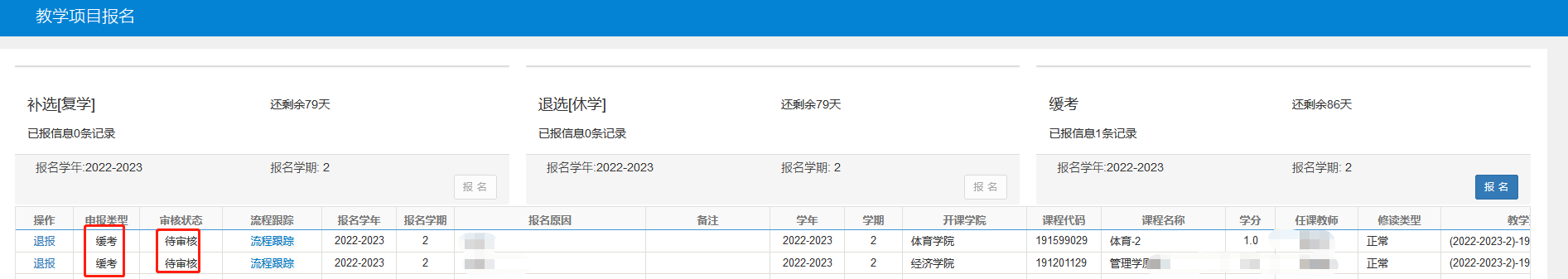注意事项:1、只有首次选学的理论课程才可提交缓考申请。
