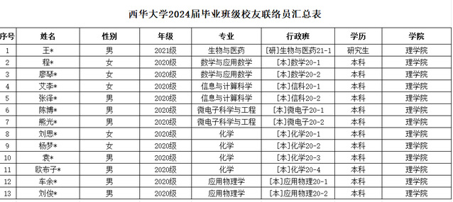 太阳成集团tyc234cc2024届毕业班级校友联络员