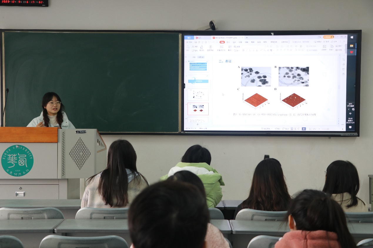 12月9日上午,太阳成集团tyc234cc在5B-307等三个教室召开了化学研究生论坛。周倩、何毅、罗晓俊、杨媛、汪婷、安文丽、符志成、严映坤、屈中华等老师出席本次论坛并作为点评老师。生物与医药、材料科学与工程和材料与化工三个专业的硕士研究生进行汇报。
