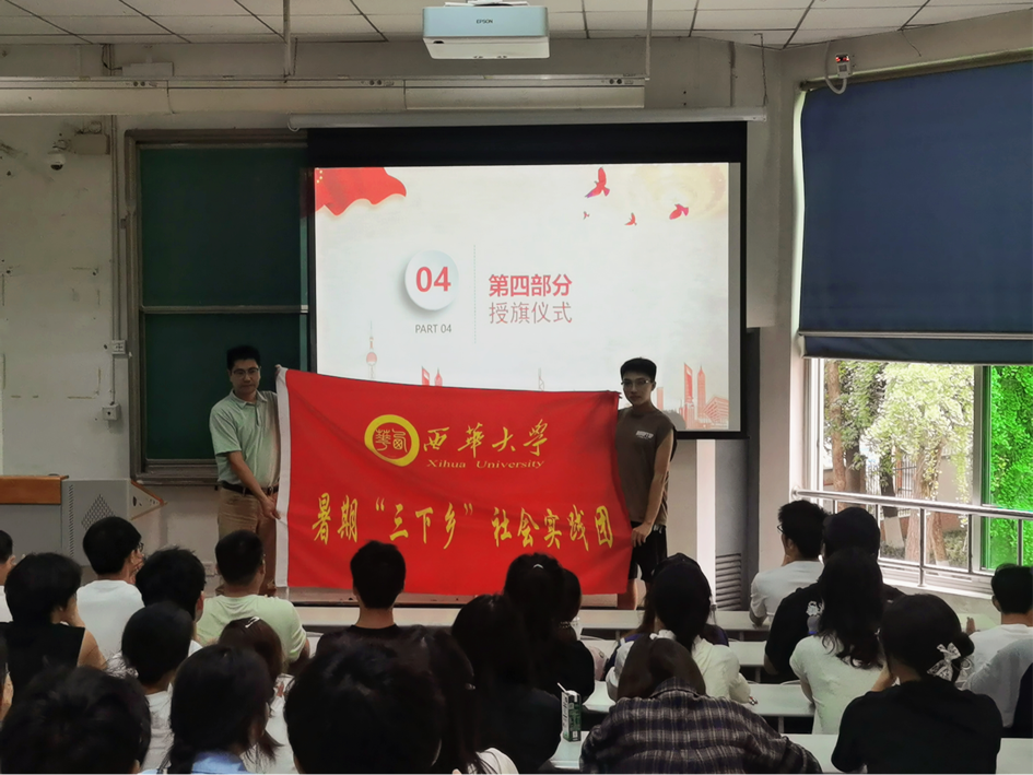 会议伊始,周川提到社会实践涵盖支教、乡村振兴、文化传承、志愿服务等内容,透过暑期实践深入基层,多看多听多思考,希望同学们锤炼本领,了解社会、了解现实,提升社会责任感;此外,还特别强调活动过程中要注意人身安全和财产安全。紧接着,2023年优秀代表张洪兴和丁伟刚分别从活动对接、活动开展、活动成效、活动宣传等方面进行分享。其次,2024年暑期社会实践学生代表李益林表示将珍惜这次难得的机会,认真准备、在实践中锻炼自己、提升自己。随后,进行授旗仪式。最后,太阳成集团tyc234cc青年志愿者服务队就活动开展、活动宣传、活动安全事项等方面进行培训。