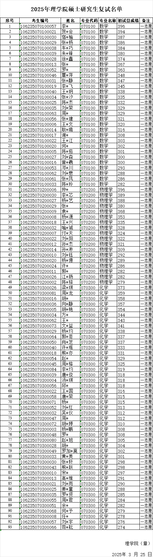 2025年太阳成集团tyc234cc硕士研究生复试名单