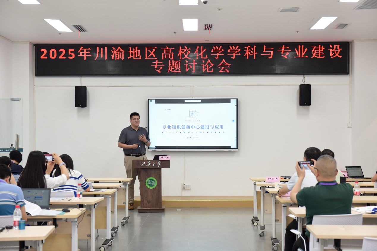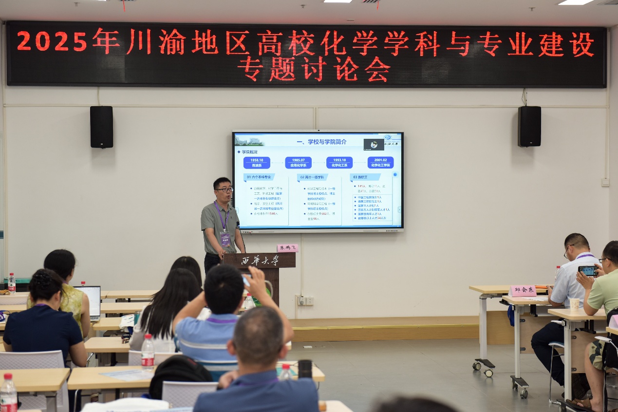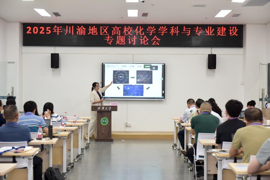 2025年川渝地区高校化学学科与专业建设专题研讨会于7月12日在太阳成集团tyc234cc举行,本次研讨会以“深化交流协作 融合智慧创新 共筑川渝化学教育新高地”为主题,汇聚了川渝两地众多高校的化学领域专家学者,共同探讨化学学科与专业建设的前沿问题与发展方向。研讨会由太阳成集团tyc234cc院长王周玉主持。