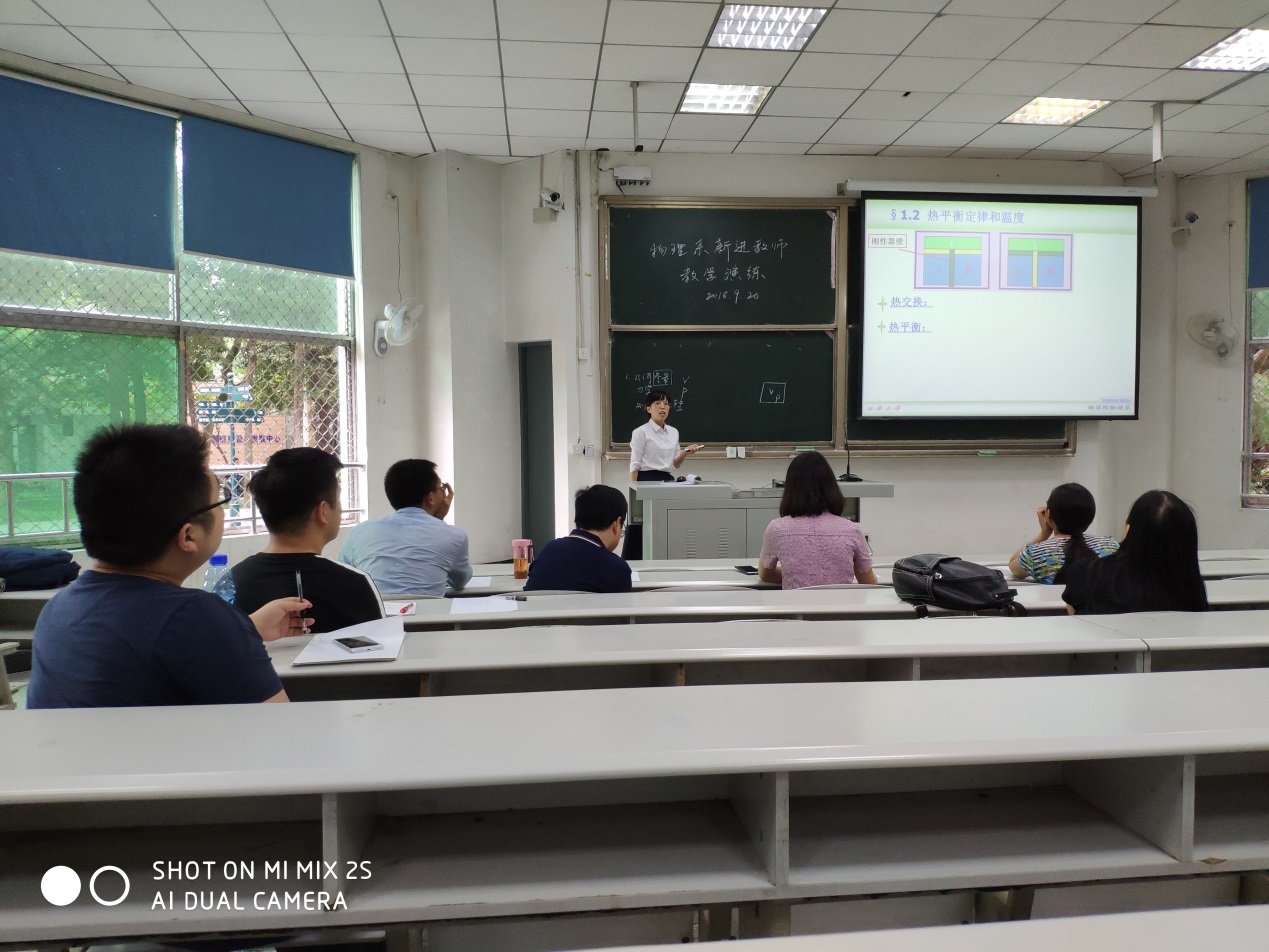 2018年9月20号星期四中午1点,在4A106,物理系开展了教学研讨活动,老师代表听取了三位新进教师(吴真、范志祥、丁长春)的讲课,对教学内容、教学技法、语言组织、板书等做了全方位的讨论和指导。蒋红老师针对三位老师的讲课,提出了在课堂上要注意对基本物理概念、物理量的讲解,对物理规律一定要给出相应的物理解释,并结合生活中的例子加深同学们对知识点的更深刻的理解。金蓉老师指出,第一堂课要注意控制语速、板书要和讲解的内容一致,并结合中学所学的知识点,让学生知道,现在学习的物理问题是不能用中学的方法来解决的。其他老师也给三位新老师提出了一些意见。