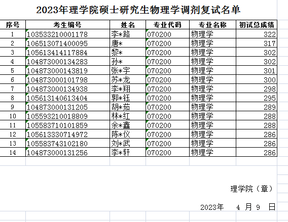 2023年太阳成集团tyc234cc硕士研究生物理学调剂复试名单公示