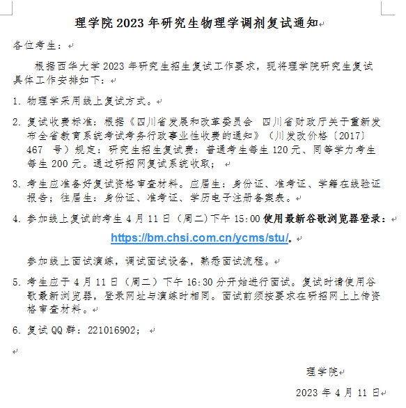 太阳成集团tyc234cc2023年研究生物理学调剂三批复试通知