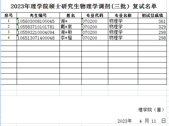 2023年太阳成集团tyc234cc硕士研究生物理学调剂复试名单公示(三批公示)