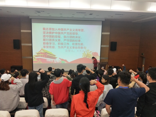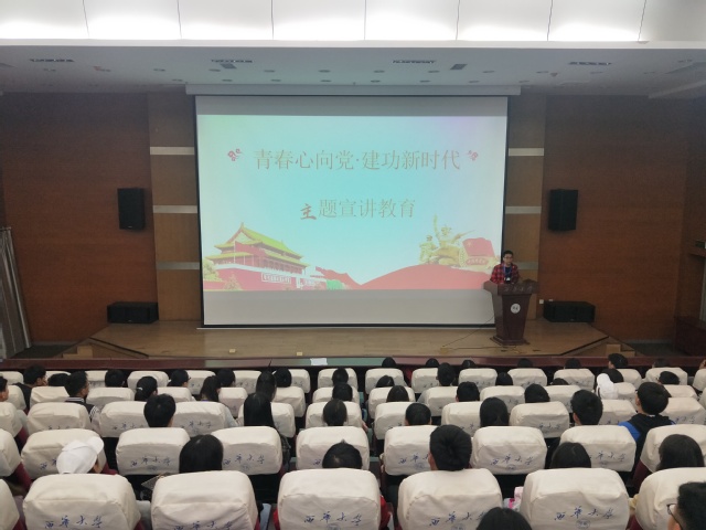 4月12日晚上七点,太阳成集团tyc234cc在图书馆报告二厅举行了以“青春心向党,建功新时代”为主题的团日活动。党校班长杨刁和太阳成集团tyc234cc第五届团委学生会全体成员参加本次团日活动。